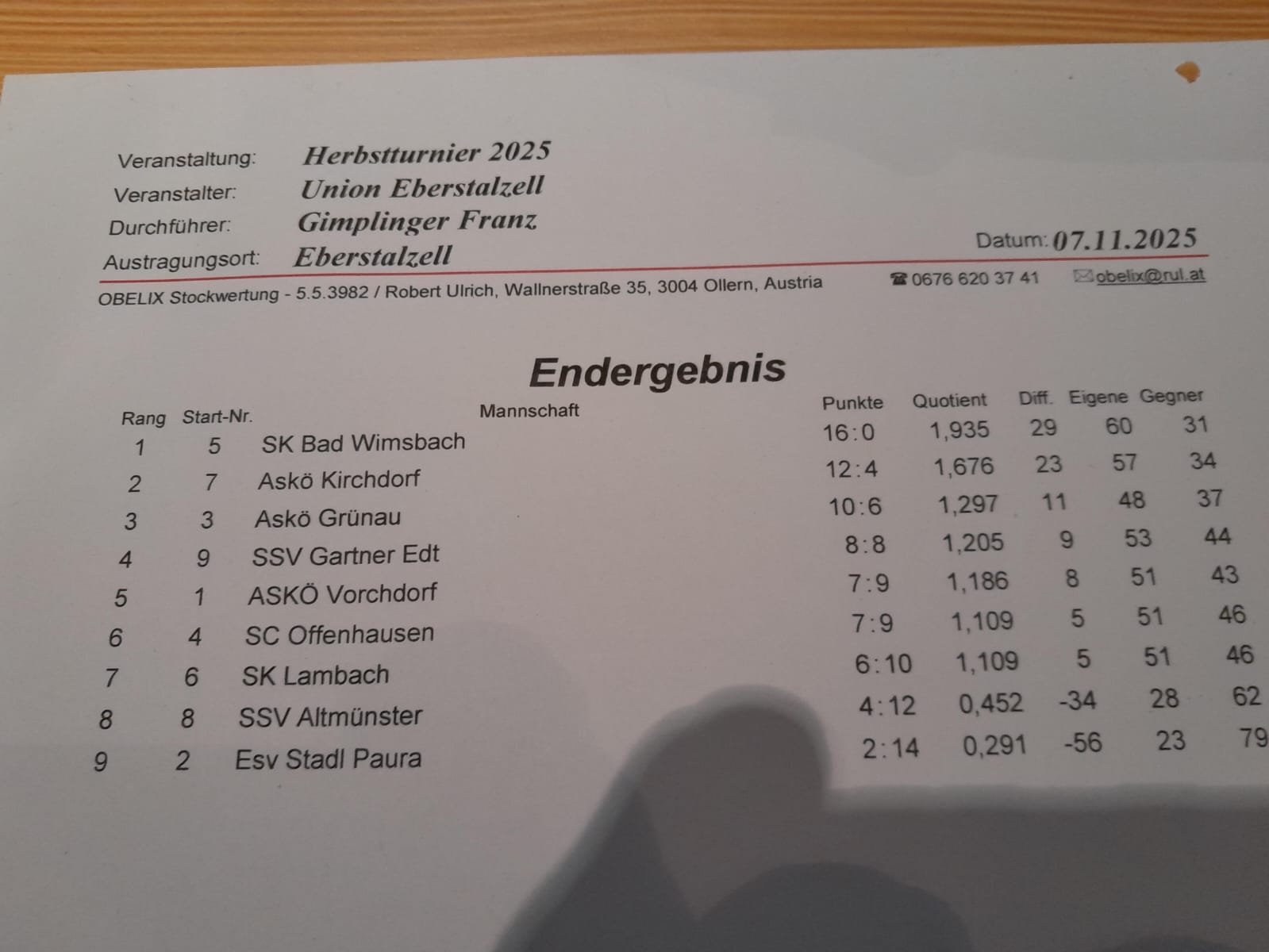 1. Platz beim Herrenturnier in Eberstalzell – 07.11.2025
