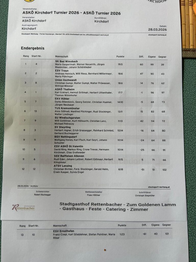 1. Platz – Herrenturnier in Kirchdorf – 28.03.2026