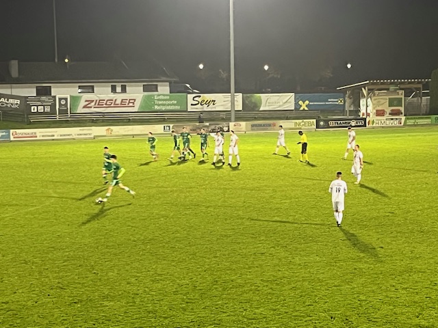 Unsere Juniors müssen nach 5 Minuten eine bittere Pille schlucken und sind mit 0:1 zurück, danach mehrere Ausgleichschancen. Das 1:1 durch Max Hochreiter zählt dann nicht, Abseits. Andere Seite wieder Abseits, aber da hat der Gäste-Assitent was dagegen und der Schiri gibt den Treffer 0:2 nach 15 Minuten. Bis zur Pause spielen eigentlich nur die Wimsbacher, scheitern ab aus den besten Positionen.