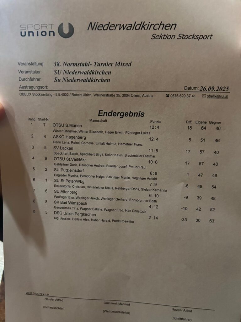 8. Platz beim Mixed Turnier in Niederwaldkirchen – 26.09.2025
