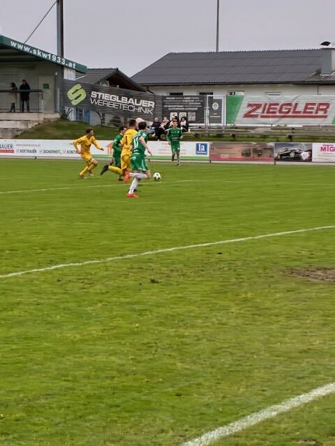Nach der Pause drücken die Wimsbacher weiter auf das 2:0 – Jakob Stockinger in Minute 47 mit der Riesenchance, aber ein Gäste Verteidiger klärt auf der Linie. Kurz darauf Mario Gaubinger mit der Chance, aber sein Schuss aus kurzer Distanz geht übers Tor. Nächster Anlauf über Schöfbenker und Zümrüt knallt das Leder neben das Tor. Die Erlösung dann zum 2:0 über Zümrüt, der den Ball reinflankt – Dominik Raab legt per Brust auf und Florian Schöfbenker erzielt halbvolley aus 16 Metern ein wunderschönes Tor ins rechte Eck. Schalchen bäumt sich in Folge nochmals etwas auf, hat ein paar gefährliche Standards, die Wimsbacher verteidigen aber geschickt und hätten den einen oder anderen Konter noch besser fertig spielen können. In Summe bleibt es bei einem letzten Heimsieg der Grün-Weißen im Kalenderjahr 2025.