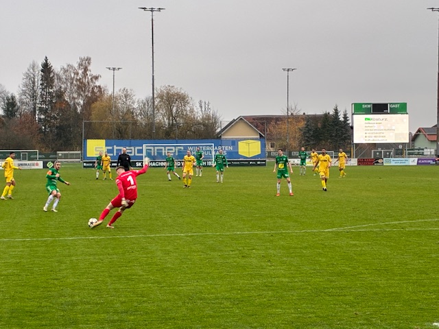 Kuriose Gelb-Rote Karte dann für Schalchens Nummer 10 – nach einem Gelb-Foul und weiteren 2 Fouls vorher rempelt er Jakob Stockinger an der Heimecke wüst um und kassiert Gelb-Rot nach 35 Minuten.