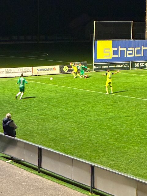 Kurze Zeit später dann Elfmeter für Esternberg – Weiss will zum Kopfball und überspringt seinen Gegenspieler und der Schiedsrichter zeigt zu allgemeinen Verwunderung auf den Punkt – 2:1 Krivec.