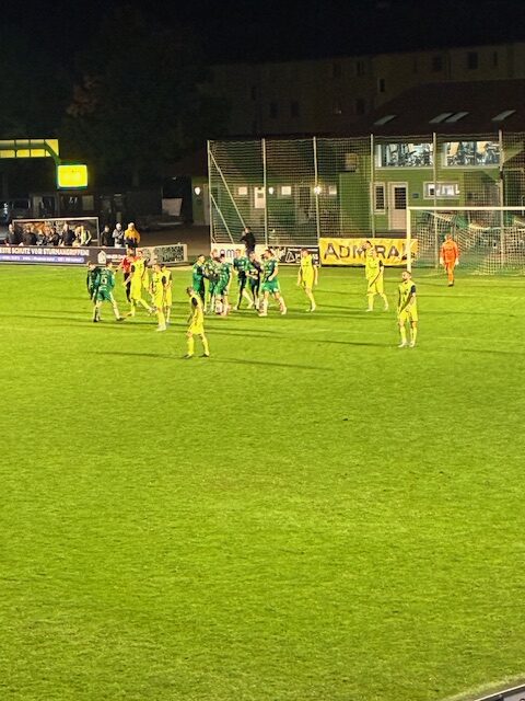 Nach einem Foul an Zümrüt dann in Minute 42 Freistoß für Grün-Weiß aus rund 25 Metern – Hadzic zirkelt den Ball über die Mauer unhaltbar zum 1:0 in die Maschen – Traumtor.