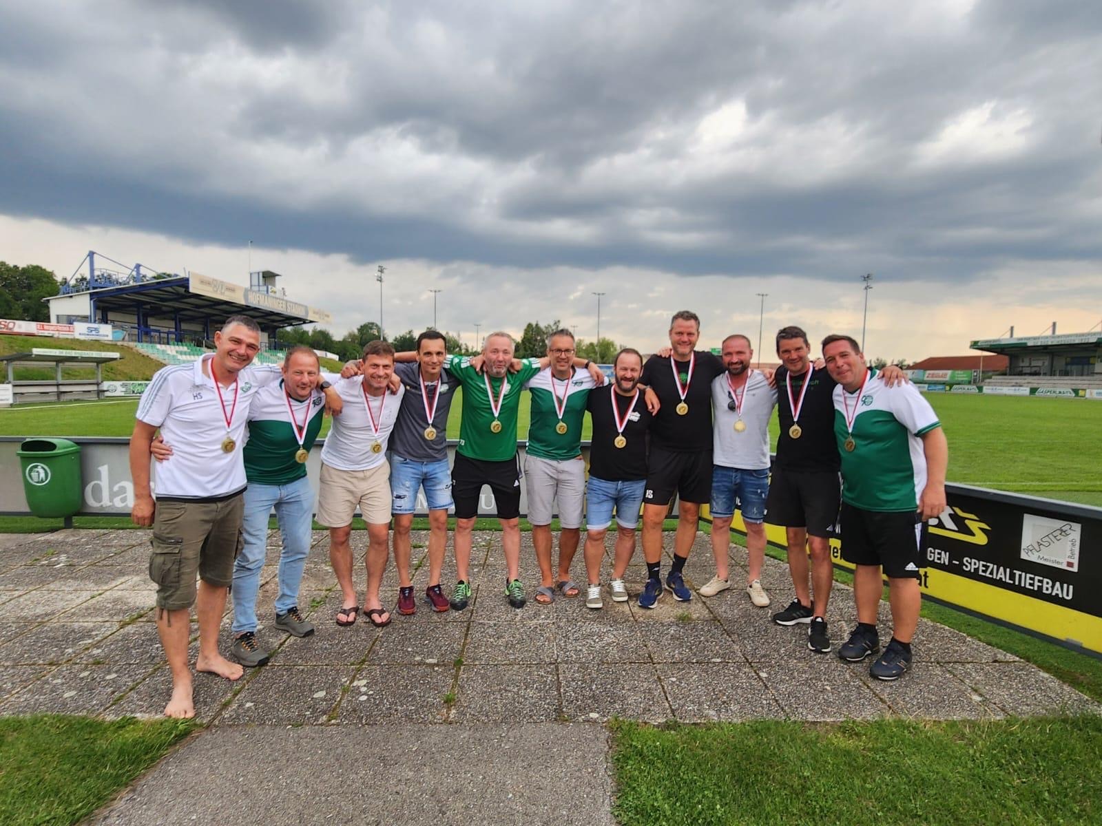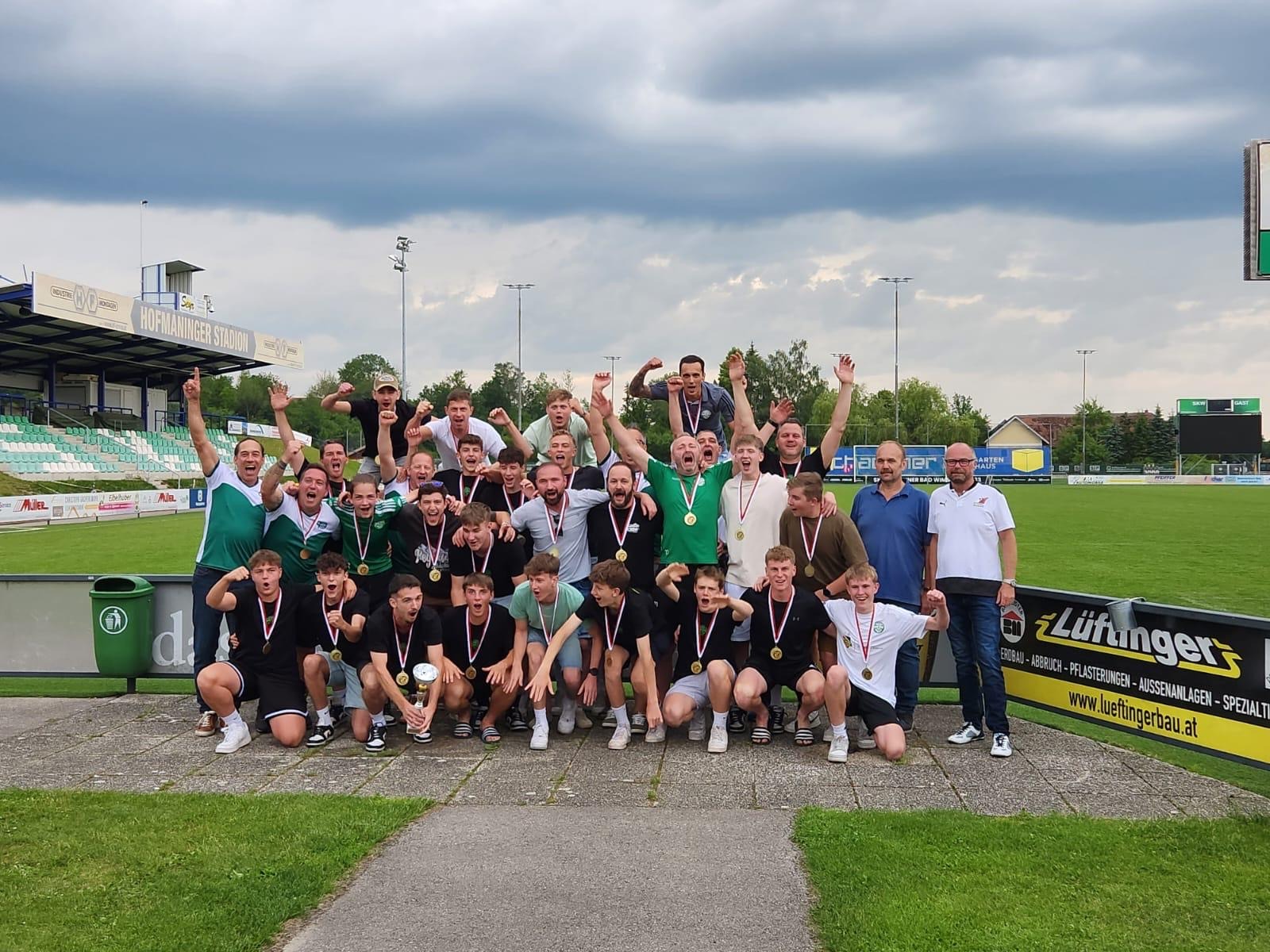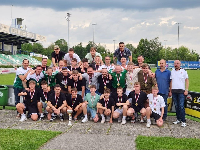 Am Samstag 8.6. fand nach dem U9 Turnier am vormittag, den U13-, U14- und U15-Spielen dann die Meisterehrung des OÖ Fußballverbandes für unser 1c/Reserve-Team statt. Nach nochmaliger Prüfung haben unglaubliche 48 Spieler an der Meisterschaft für den SK Bad Wimsbach teilgenommen. Auch einige Vater&Sohn-Geschichten gibt es dazu – Raphael & Helmut Ohler, Max & Stefan Hochreiter, Tobi & David Tuschek konnten in diesem Team teilweise sogar gemeinsam spielen, was natürlich für ein paar Lacher sorgte 🙂