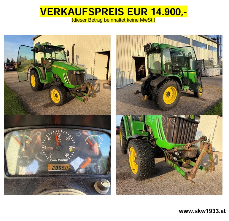 Vereine aufgepasst – der SKW verkauft wegen Maschinenumrüstung den John Deere 3720 Kompakttraktor samt der Maschine Wiedenmann Terra Spike GXI6.